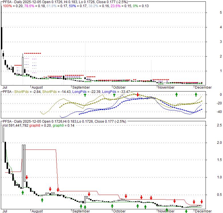 Price has closed above its short-term moving average. Short-term moving average is currently below mid-term; and below long-term moving average. From the relationship between price and moving averages: This stock is NEUTRAL in short-term; and BEARISH in mid-long term.[ PFSA ] has closed below upper band by 15.3%. Bollinger Bands are 0% narrower than normal.
