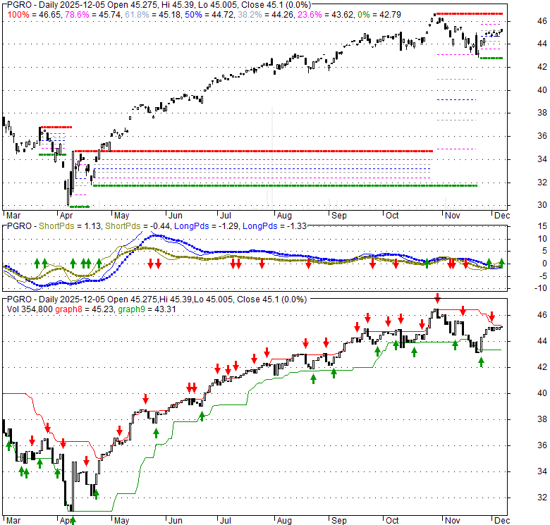 Price has closed above its short-term moving average. Short-term moving average is currently above mid-term; and above long-term moving average. From the relationship between price and moving averages: This stock is BULLISH in short-term; and BULLISH in mid-long term.[ PGRO ] has closed below upper band by 24.4%. Bollinger Bands are 33.7% wider than normal. The current width of the bands does not suggest anything about the future direction or movement of prices.