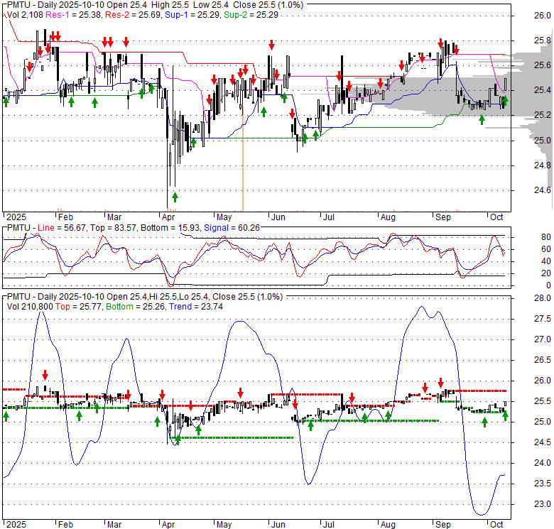 Price has closed above its short-term moving average. Short-term moving average is currently below mid-term; and below long-term moving average. From the relationship between price and moving averages: This stock is NEUTRAL in short-term; and NEUTRAL in mid-long term.[ PMTU ] has closed Bollinger Bands are 35.4% narrower than normal. The current width of the bands does not suggest anything about the future direction or movement of prices.