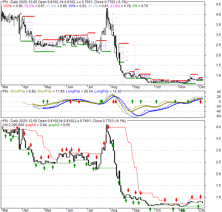 Price has closed below its short-term moving average. Short-term moving average is currently above mid-term; and below long-term moving average. From the relationship between price and moving averages: This stock is NEUTRAL in short-term; and NEUTRAL in mid-long term.[ PN ] has closed above bottom band by 14.0%. Bollinger Bands are 88.9% narrower than normal. The narrow width of the bands suggests low volatility as compared to its normal range. The bands have been in this narrow range for 65 bars. This is a sign that the market may be about to initiate a new trend.