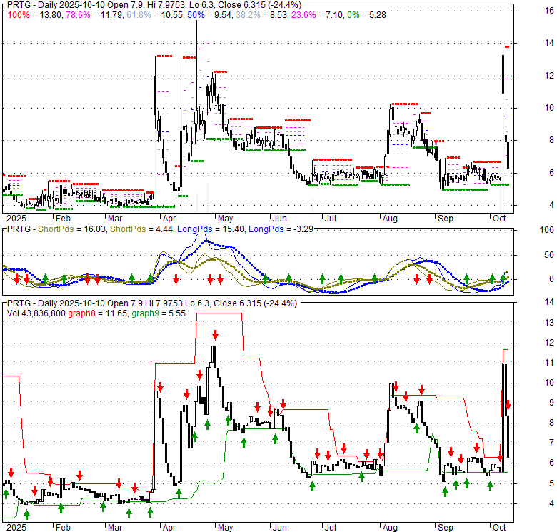 Price has closed below its short-term moving average. Short-term moving average is currently above mid-term; and above long-term moving average. From the relationship between price and moving averages: This stock is NEUTRAL in short-term; and BULLISH in mid-long term.[ PRTG ] has closed above bottom band by 48.7%. Bollinger Bands are 110.7% wider than normal. The large width of the bands suggest high volatility as compared to its normal range. The bands have been in this wide range for 2 days. This is a sign that the current trend might continue.