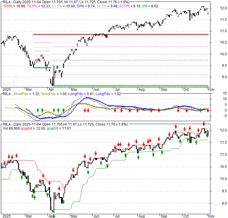 Price has closed below its short-term moving average. Short-term moving average is currently above mid-term; and above long-term moving average. From the relationship between price and moving averages: This stock is NEUTRAL in short-term; and BULLISH in mid-long term.[ RILA ] has closed above bottom band by 31.1%. Bollinger Bands are 33.6% wider than normal. The current width of the bands does not suggest anything about the future direction or movement of prices.