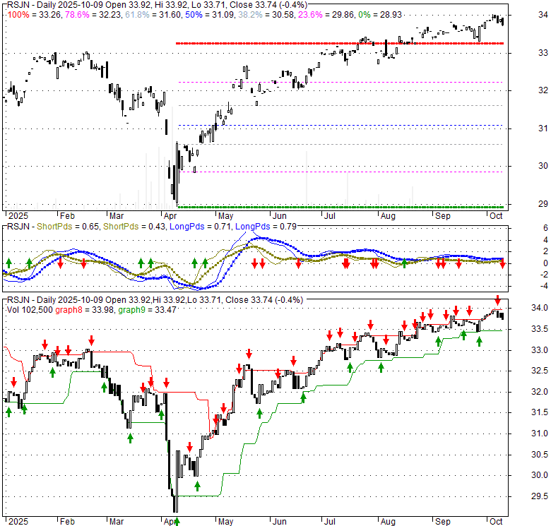 Price has closed below its short-term moving average. Short-term moving average is currently above mid-term; and above long-term moving average. From the relationship between price and moving averages: This stock is NEUTRAL in short-term; and BULLISH in mid-long term.[ RSJN ] has closed above bottom band by 42.4%. Bollinger Bands are 37.7% narrower than normal. The current width of the bands does not suggest anything about the future direction or movement of prices.