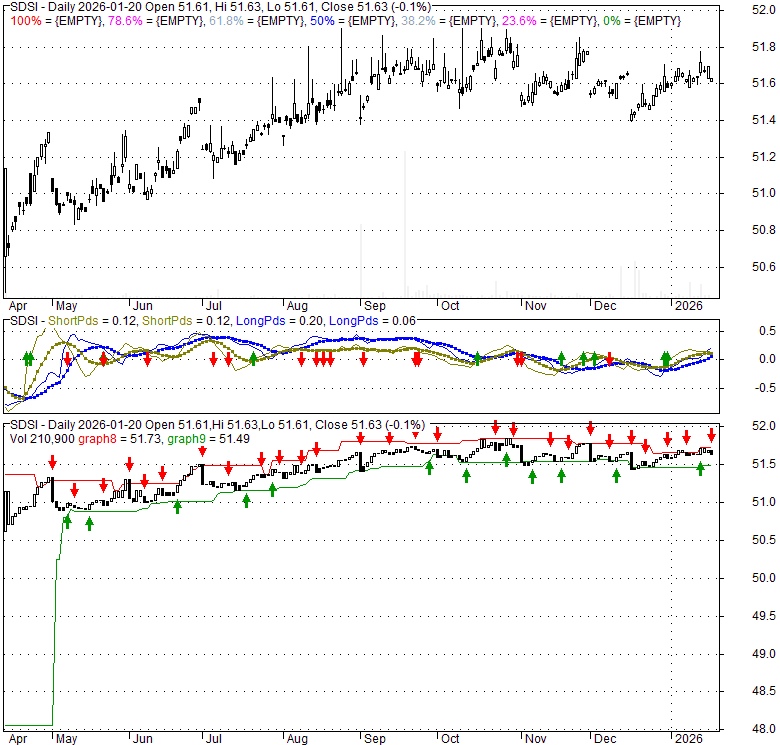 Price has closed below its short-term moving average. Short-term moving average is currently above mid-term; and above long-term moving average. From the relationship between price and moving averages: This stock is NEUTRAL in short-term; and NEUTRAL in mid-long term.[ SDSI ] has closed above bottom band by 41.9%. Bollinger Bands are 49.6% narrower than normal. The narrow width of the bands suggests low volatility as compared to its normal range. The bands have been in this narrow range for 1 bars. This is a sign that the market may be about to initiate a new trend.