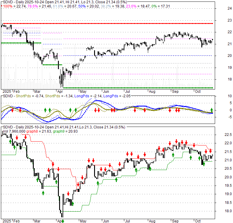 Price has closed above its short-term moving average. Short-term moving average is currently below mid-term; and above long-term moving average. From the relationship between price and moving averages: This stock is NEUTRAL in short-term; and NEUTRAL in mid-long term.[ SDVD ] has closed below upper band by 35.1%. Bollinger Bands are 1.7% narrower than normal. The current width of the bands does not suggest anything about the future direction or movement of prices.