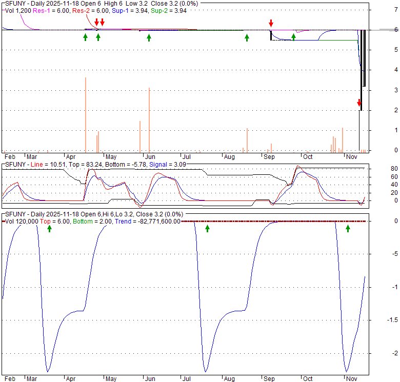 Price has closed below its short-term moving average. Short-term moving average is currently below mid-term; and below long-term moving average. From the relationship between price and moving averages: This stock is BEARISH in short-term; and BEARISH in mid-long term.[ SFUNY ] has closed above bottom band by 19.2%. Bollinger Bands are 1302.1% wider than normal. The large width of the bands suggest high volatility as compared to its normal range. The bands have been in this wide range for 3 days. This is a sign that the current trend might continue.