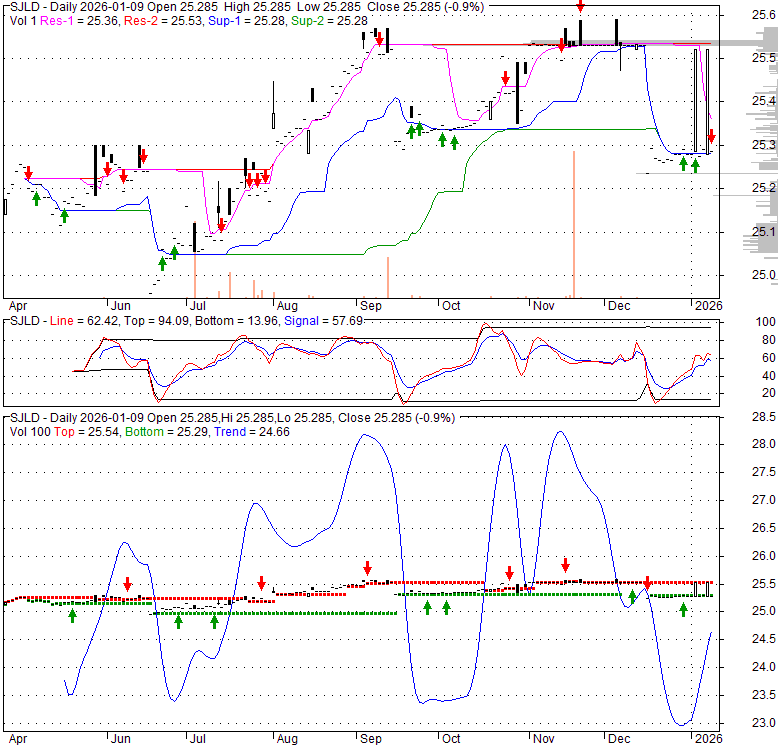 Price has closed below its short-term moving average. Short-term moving average is currently below mid-term; and below long-term moving average. From the relationship between price and moving averages: This stock is BEARISH in short-term; and NEUTRAL in mid-long term.[ SJLD ] has closed above bottom band by 43.0%. Bollinger Bands are 58.4% wider than normal. The large width of the bands suggest high volatility as compared to its normal range. The bands have been in this wide range for 1 days. This is a sign that the current trend might continue.