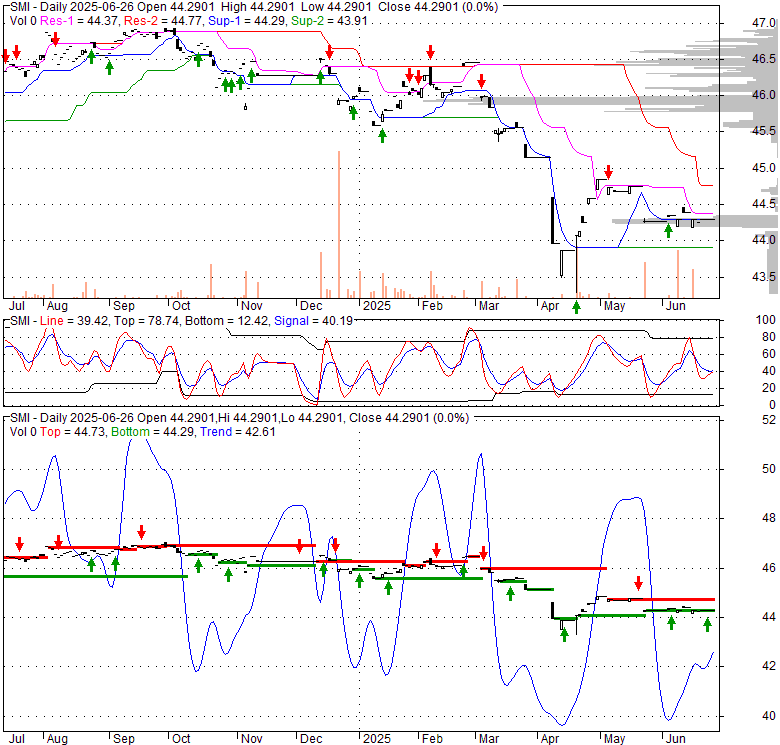 | 52-week | High : | 47.04 | Low : | 43.28 |