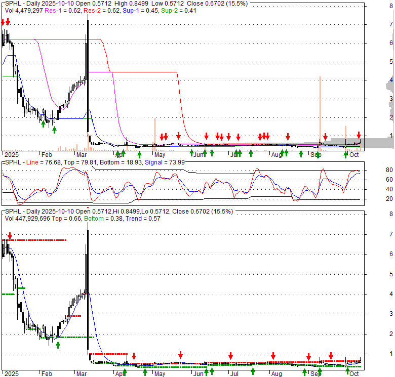 Price has closed above its short-term moving average. Short-term moving average is currently above mid-term; and above long-term moving average. From the relationship between price and moving averages: This stock is BULLISH in short-term; and NEUTRAL in mid-long term.[ SPHL ] has closed below upper band by 1.3%. Bollinger Bands are 94.3% wider than normal. The large width of the bands suggest high volatility as compared to its normal range. The bands have been in this wide range for 3 days. This is a sign that the current trend might continue.