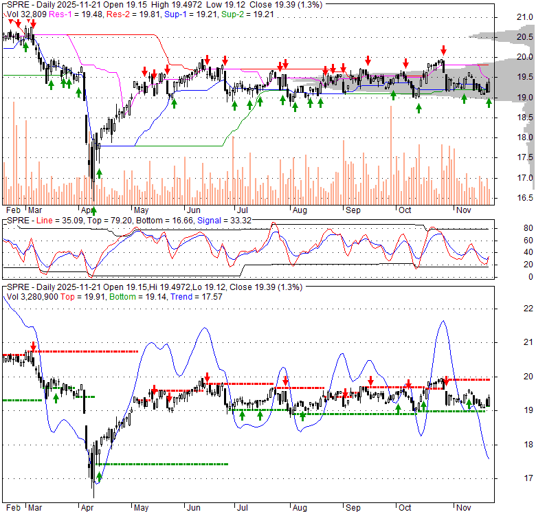 Price has closed above its short-term moving average. Short-term moving average is currently below mid-term; and below long-term moving average. From the relationship between price and moving averages: This stock is NEUTRAL in short-term; and NEUTRAL in mid-long term.[ SPRE ] has closed below upper band by 37.9%. Bollinger Bands are 12.6% narrower than normal. The current width of the bands does not suggest anything about the future direction or movement of prices.