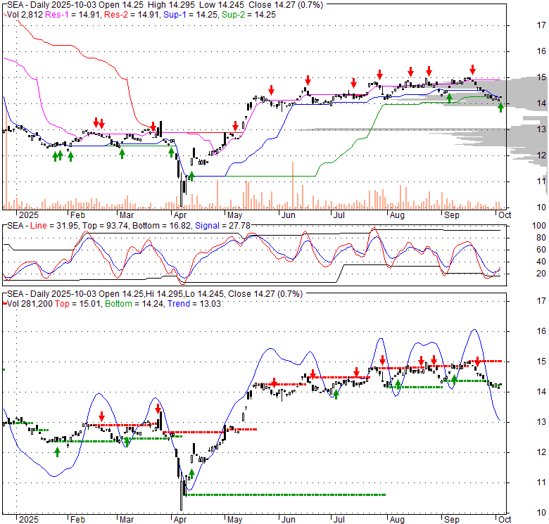Price has closed below its short-term moving average. Short-term moving average is currently below mid-term; and below long-term moving average. From the relationship between price and moving averages: This stock is NEUTRAL in short-term; and NEUTRAL in mid-long term.[ SSEA ] has closed Bollinger Bands are 0% narrower than normal.