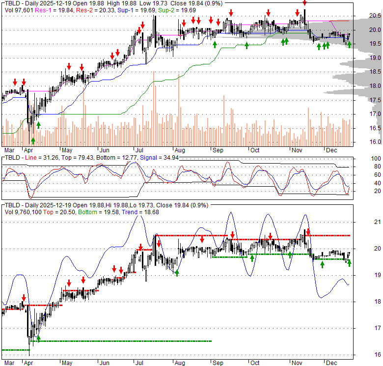 Price has closed above its short-term moving average. Short-term moving average is currently below mid-term; and below long-term moving average. From the relationship between price and moving averages: This stock is NEUTRAL in short-term; and BEARISH in mid-long term.[ TBLD ] has closed below upper band by 33.1%. Bollinger Bands are 32.4% narrower than normal. The current width of the bands does not suggest anything about the future direction or movement of prices.