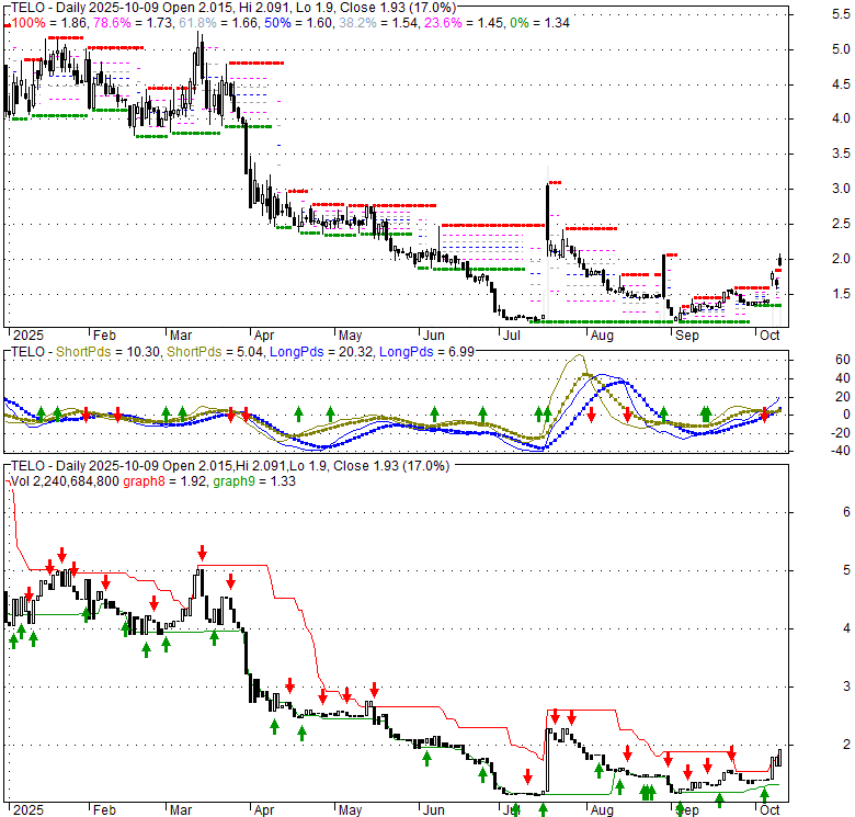 Price has closed above its short-term moving average. Short-term moving average is currently above mid-term; and below long-term moving average. From the relationship between price and moving averages: This stock is BULLISH in short-term; and NEUTRAL in mid-long term.[ TELO ] has closed above the upper band by 15.0%. If price is in a uptrend band; this upward trend in price might continue. However a short term pullback inside the band is likely.Bollinger Bands are 11.1% narrower than normal. The current width of the bands does not suggest anything about the future direction or movement of prices.