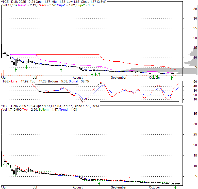 Price has closed above its short-term moving average. Short-term moving average is currently below mid-term; and below long-term moving average. From the relationship between price and moving averages: This stock is NEUTRAL in short-term; and NEUTRAL in mid-long term.[ TGE ] has closed above bottom band by 48.0%. Bollinger Bands are 0% narrower than normal.
