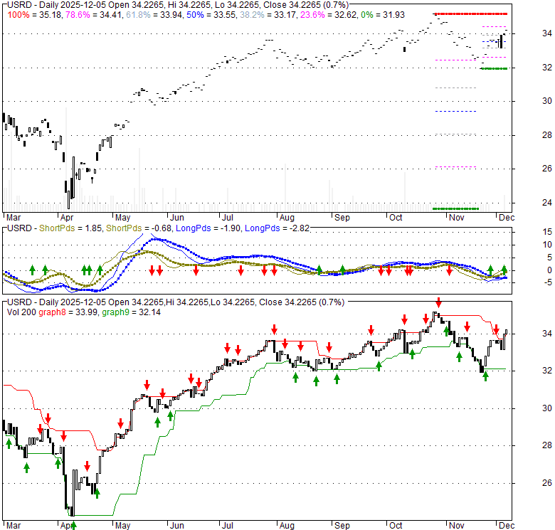 Price has closed above its short-term moving average. Short-term moving average is currently below mid-term; and above long-term moving average. From the relationship between price and moving averages: This stock is NEUTRAL in short-term; and NEUTRAL in mid-long term.[ USRD ] has closed above bottom band by 42.4%. Bollinger Bands are 92.7% wider than normal. The large width of the bands suggest high volatility as compared to its normal range. The bands have been in this wide range for 11 days. This is a sign that the current trend might continue.