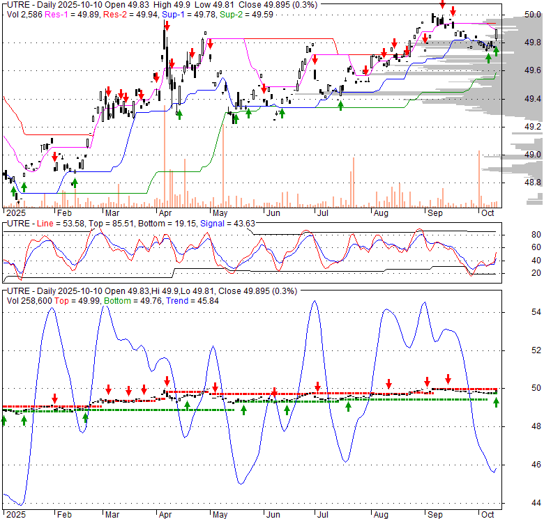 Price has closed above its short-term moving average. Short-term moving average is currently below mid-term; and above long-term moving average. From the relationship between price and moving averages: This stock is NEUTRAL in short-term; and NEUTRAL in mid-long term.[ UTRE ] has closed It is unclear right now based on current values. 48.2% narrower than normal. The narrow width of the bands suggests low volatility as compared to its normal range. The bands have been in this narrow range for 3 bars. This is a sign that the market may be about to initiate a new trend.