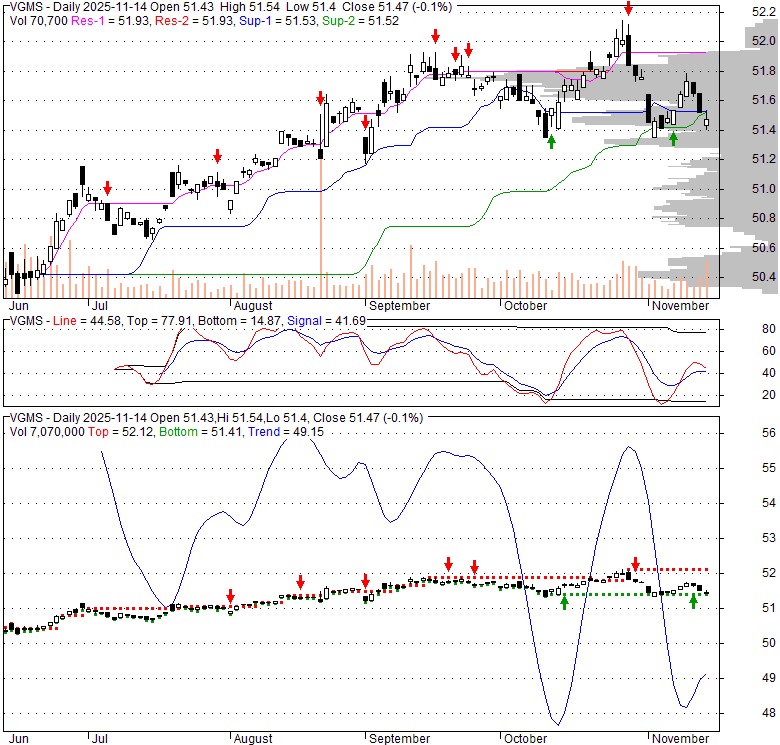 Price has closed below its short-term moving average. Short-term moving average is currently below mid-term; and above long-term moving average. From the relationship between price and moving averages: This stock is BEARISH in short-term; and NEUTRAL in mid-long term.[ VGMS ] has closed above bottom band by 26.9%. Bollinger Bands are 0% narrower than normal.