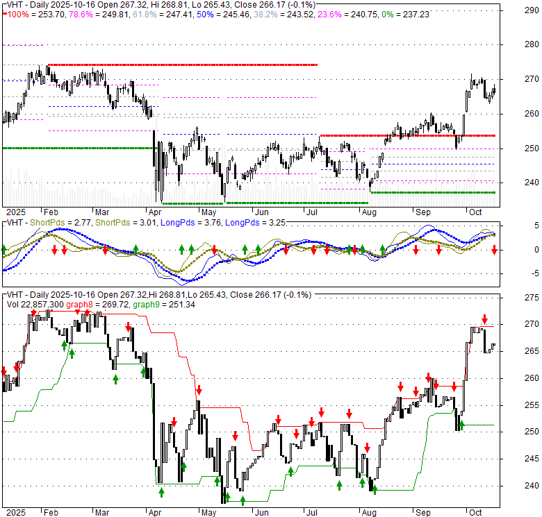 Price has closed above its short-term moving average. Short-term moving average is currently above mid-term; and above long-term moving average. From the relationship between price and moving averages: This stock is BULLISH in short-term; and BULLISH in mid-long term.[ VHT ] has closed below upper band by 43.3%. Bollinger Bands are 57.6% wider than normal. The large width of the bands suggest high volatility as compared to its normal range. The bands have been in this wide range for 10 days. This is a sign that the current trend might continue.