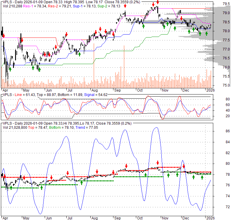 Price has closed below its short-term moving average. Short-term moving average is currently below mid-term; and below long-term moving average. From the relationship between price and moving averages: This stock is BEARISH in short-term; and BEARISH in mid-long term.[ VPLS ] has closed above bottom band by 46.7%. Bollinger Bands are 47.7% narrower than normal. The narrow width of the bands suggests low volatility as compared to its normal range. The bands have been in this narrow range for 0 bars. This is a sign that the market may be about to initiate a new trend.