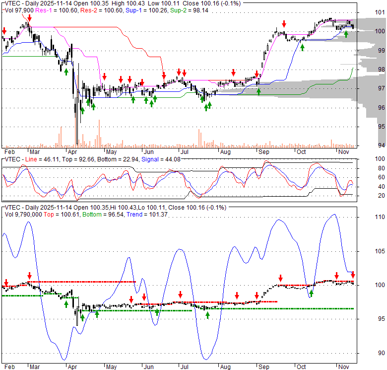 Price has closed below its short-term moving average. Short-term moving average is currently above mid-term; and above long-term moving average. From the relationship between price and moving averages: This stock is NEUTRAL in short-term; and BULLISH in mid-long term.[ VTEC ] has closed above bottom band by 21.9%. Bollinger Bands are 33.4% narrower than normal. The current width of the bands does not suggest anything about the future direction or movement of prices.