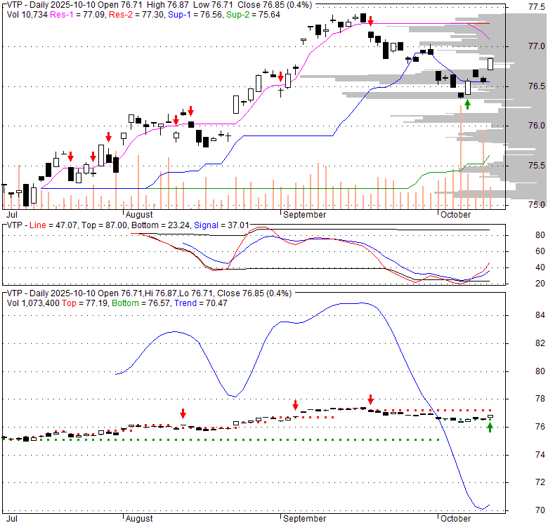 Price has closed above its short-term moving average. Short-term moving average is currently below mid-term; and below long-term moving average. From the relationship between price and moving averages: This stock is NEUTRAL in short-term; and NEUTRAL in mid-long term.[ VTP ] has closed below upper band by 34.8%. Bollinger Bands are 0% narrower than normal.