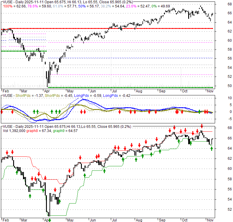 Price has closed above its short-term moving average. Short-term moving average is currently below mid-term; and above long-term moving average. From the relationship between price and moving averages: This stock is NEUTRAL in short-term; and NEUTRAL in mid-long term.[ VUSE ] has closed above bottom band by 45.4%. Bollinger Bands are 41.3% wider than normal. The large width of the bands suggest high volatility as compared to its normal range. The bands have been in this wide range for 2 days. This is a sign that the current trend might continue.