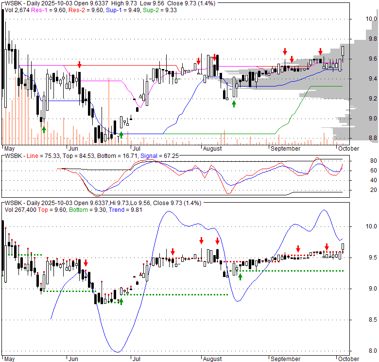 Price has closed above its short-term moving average. Short-term moving average is currently above mid-term; and above long-term moving average. From the relationship between price and moving averages: This stock is BULLISH in short-term; and BULLISH in mid-long term.[ WSBK ] has closed Bollinger Bands are 0% narrower than normal.
