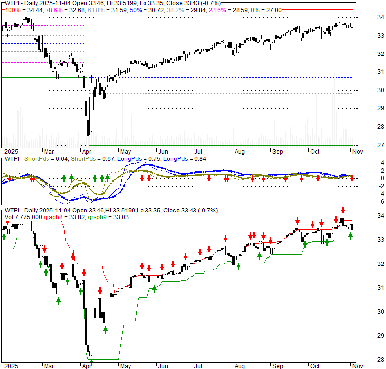 Price has closed below its short-term moving average. Short-term moving average is currently above mid-term; and above long-term moving average. From the relationship between price and moving averages: This stock is NEUTRAL in short-term; and BULLISH in mid-long term.[ WTPI ] has closed above bottom band by 39.3%. Bollinger Bands are 5.8% wider than normal. The current width of the bands does not suggest anything about the future direction or movement of prices.