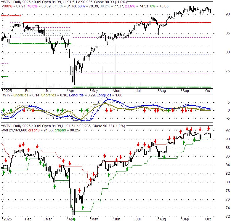 Price has closed below its short-term moving average. Short-term moving average is currently above mid-term; and above long-term moving average. From the relationship between price and moving averages: This stock is NEUTRAL in short-term; and BULLISH in mid-long term.[ WTV ] has closed above bottom band by 0.7%. Bollinger Bands are 53.7% narrower than normal. The narrow width of the bands suggests low volatility as compared to its normal range. The bands have been in this narrow range for 19 bars. This is a sign that the market may be about to initiate a new trend.