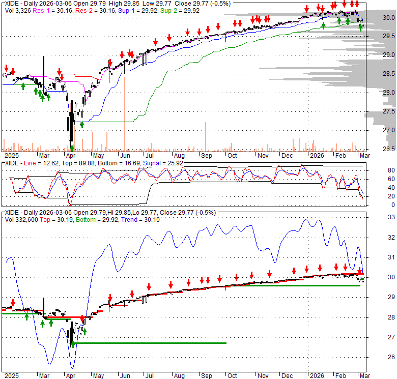 Price has closed below its short-term moving average. Short-term moving average is currently below mid-term; and below long-term moving average. From the relationship between price and moving averages: This stock is BEARISH in short-term; and NEUTRAL in mid-long term.[ XIDE ] has closed below the lower bollinger band by 13.8%. If price is in a downtrend band; this downward trend might continue. However a short term pullback inside the band is likely. Bollinger Bands are 168.6% wider than normal. The large width of the bands suggest high volatility as compared to its normal range. The bands have been in this wide range for 4 days. This is a sign that the current trend might continue.