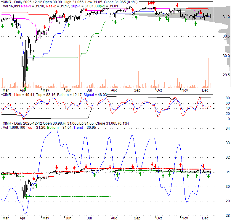 Price has closed above its short-term moving average. Short-term moving average is currently below mid-term; and below long-term moving average. From the relationship between price and moving averages: This stock is NEUTRAL in short-term; and BEARISH in mid-long term.[ XIMR ] has closed below upper band by 45.9%. Bollinger Bands are 15% narrower than normal. The current width of the bands does not suggest anything about the future direction or movement of prices.