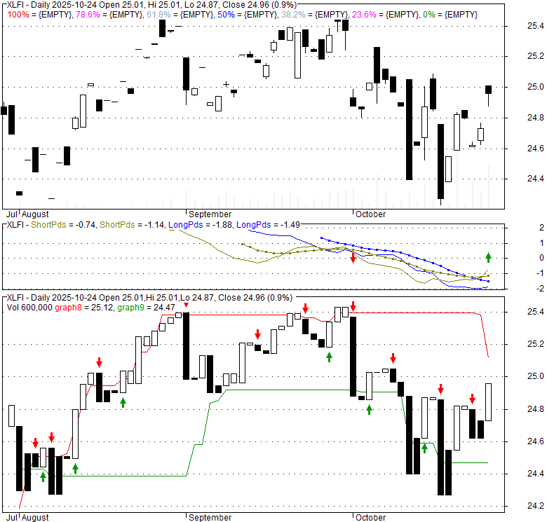 Price has closed above its short-term moving average. Short-term moving average is currently below mid-term; and below long-term moving average. From the relationship between price and moving averages: This stock is NEUTRAL in short-term; and NEUTRAL in mid-long term.[ XLFI ] has closed below upper band by 27.5%. Bollinger Bands are 0% narrower than normal.