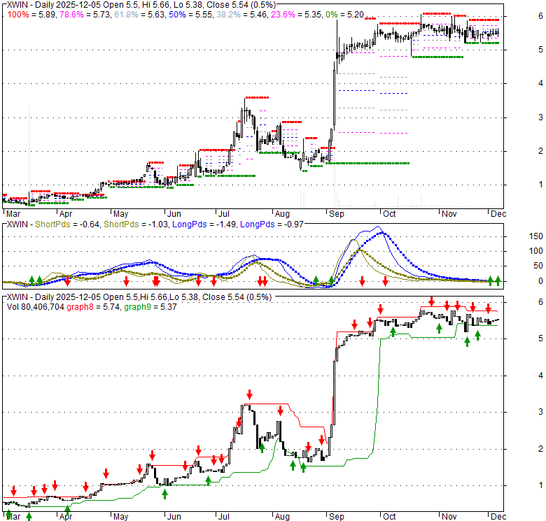 Price has closed above its short-term moving average. Short-term moving average is currently below mid-term; and above long-term moving average. From the relationship between price and moving averages: This stock is NEUTRAL in short-term; and NEUTRAL in mid-long term.[ XWIN ] has closed below upper band by 33.9%. Bollinger Bands are 70.1% narrower than normal. The narrow width of the bands suggests low volatility as compared to its normal range. The bands have been in this narrow range for 50 bars. This is a sign that the market may be about to initiate a new trend.