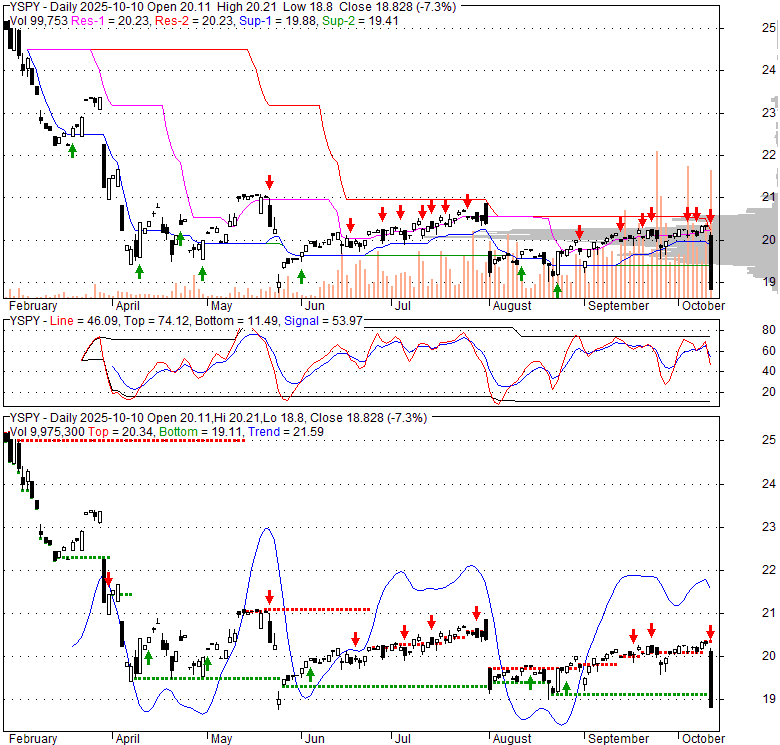 Price has closed below its short-term moving average. Short-term moving average is currently above mid-term; and below long-term moving average. From the relationship between price and moving averages: This stock is NEUTRAL in short-term; and NEUTRAL in mid-long term.[ YSPY ] has closed below the lower bollinger band by 35.0%. Bollinger Bands are 17.5% wider than normal. The current width of the bands does not suggest anything about the future direction or movement of prices.