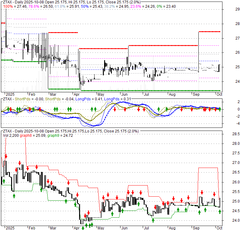 Price has closed above its short-term moving average. Short-term moving average is currently below mid-term; and below long-term moving average. From the relationship between price and moving averages: This stock is NEUTRAL in short-term; and NEUTRAL in mid-long term.[ ZTAX ] has closed below upper band by 3.8%. Bollinger Bands are 15% narrower than normal. The current width of the bands does not suggest anything about the future direction or movement of prices.