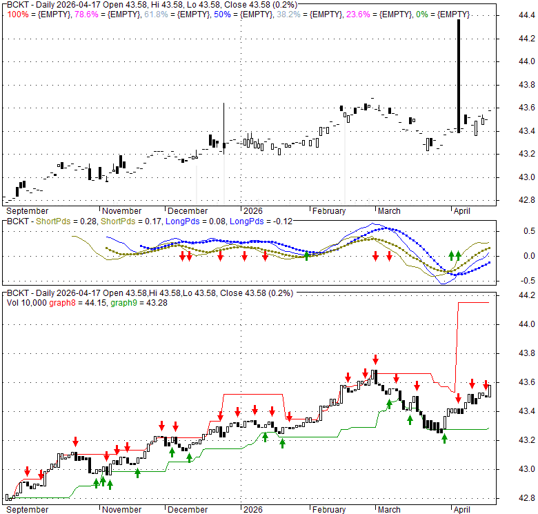 Price has closed above its short-term moving average. Short-term moving average is currently above mid-term; and above long-term moving average. From the relationship between price and moving averages: This stock is BULLISH in short-term; and BULLISH in mid-long term.[ BCKT ] has closed below upper band by 5.7%. Bollinger Bands are 30.5% wider than normal. The current width of the bands does not suggest anything about the future direction or movement of prices.