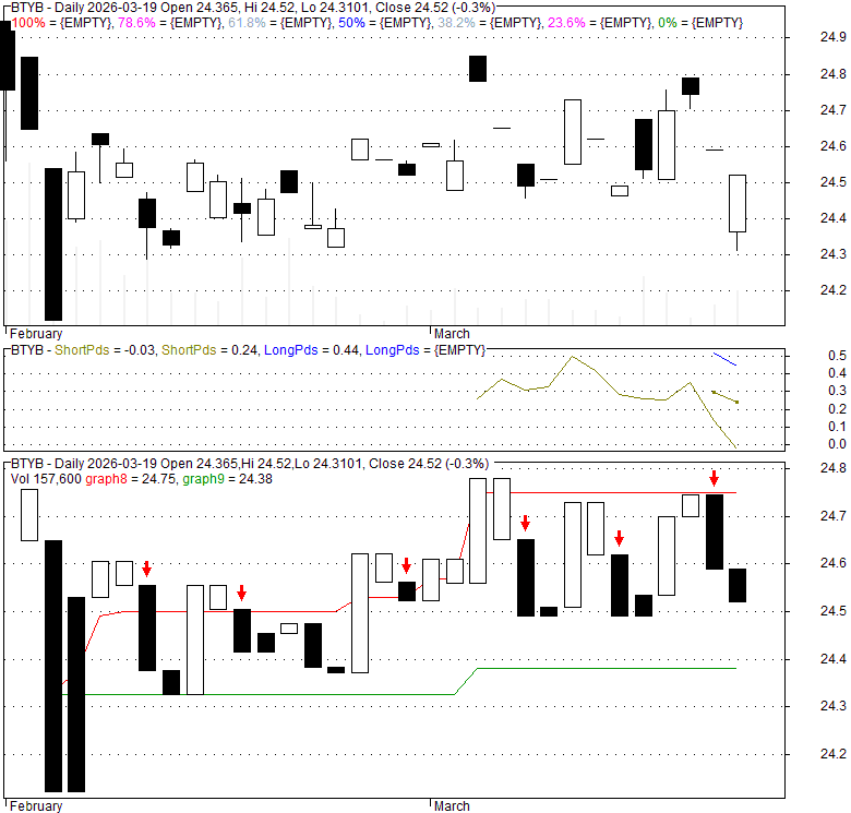 Price has closed below its short-term moving average. Short-term moving average is currently below mid-term; and below long-term moving average. From the relationship between price and moving averages: This stock is NEUTRAL in short-term; and NEUTRAL in mid-long term.[ BTYB ] has closed above bottom band by 27.8%. Bollinger Bands are 0% narrower than normal.
