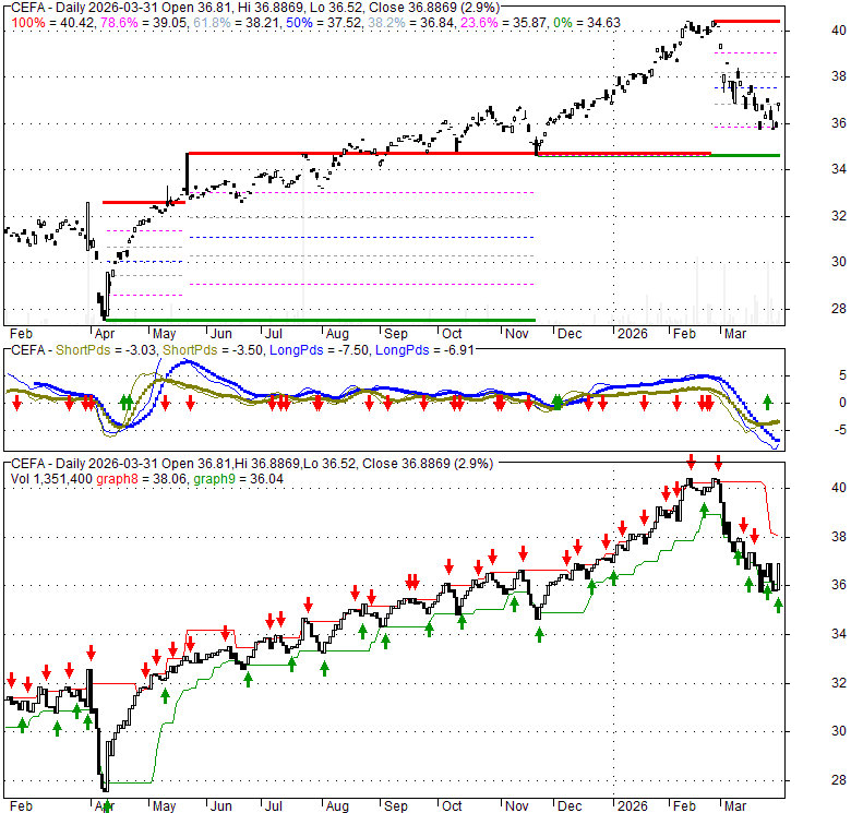 Price has closed above its short-term moving average. Short-term moving average is currently below mid-term; and below long-term moving average. From the relationship between price and moving averages: This stock is NEUTRAL in short-term; and NEUTRAL in mid-long term.[ CEFA ] has closed below upper band by 41.8%. Bollinger Bands are 15.9% wider than normal. The current width of the bands does not suggest anything about the future direction or movement of prices.