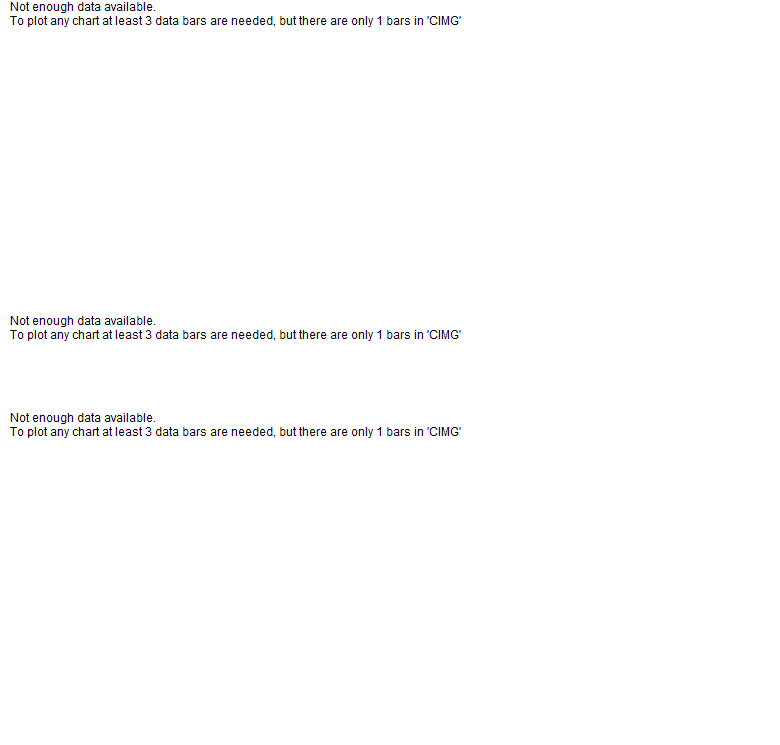 Price has closed below its short-term moving average. Short-term moving average is currently below mid-term; and below long-term moving average. From the relationship between price and moving averages: This stock is NEUTRAL in short-term; and NEUTRAL in mid-long term.[ CIMG ] has closed Bollinger Bands are 0% narrower than normal.
