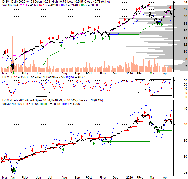 Price has closed below its short-term moving average. Short-term moving average is currently above mid-term; and above long-term moving average. From the relationship between price and moving averages: This stock is NEUTRAL in short-term; and BULLISH in mid-long term.[ DISV ] has closed above bottom band by 46.6%. Bollinger Bands are 8.7% narrower than normal. The current width of the bands does not suggest anything about the future direction or movement of prices.