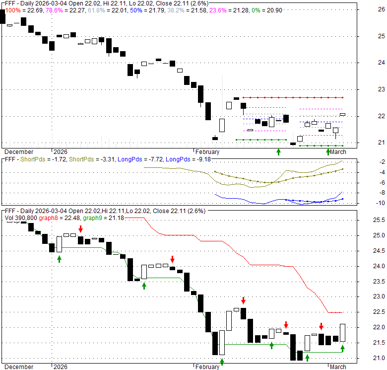 Price has closed above its short-term moving average. Short-term moving average is currently below mid-term; and below long-term moving average. From the relationship between price and moving averages: This stock is NEUTRAL in short-term; and NEUTRAL in mid-long term.[ FFF ] has closed below upper band by 16.9%. Bollinger Bands are 0% narrower than normal.