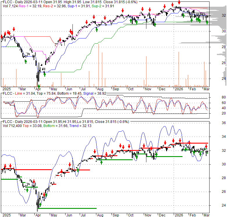 Price has closed below its short-term moving average. Short-term moving average is currently below mid-term; and below long-term moving average. From the relationship between price and moving averages: This stock is BEARISH in short-term; and NEUTRAL in mid-long term.[ FLCC ] has closed below the lower bollinger band by 7.6%. If price is in a downtrend band; this downward trend might continue. However a short term pullback inside the band is likely. Bollinger Bands are 20.4% narrower than normal. The current width of the bands does not suggest anything about the future direction or movement of prices.