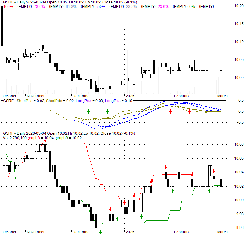 Price has closed below its short-term moving average. Short-term moving average is currently above mid-term; and below long-term moving average. From the relationship between price and moving averages: This stock is NEUTRAL in short-term; and NEUTRAL in mid-long term.[ GSRF ] has closed above bottom band by 30.8%. Bollinger Bands are 0% narrower than normal.