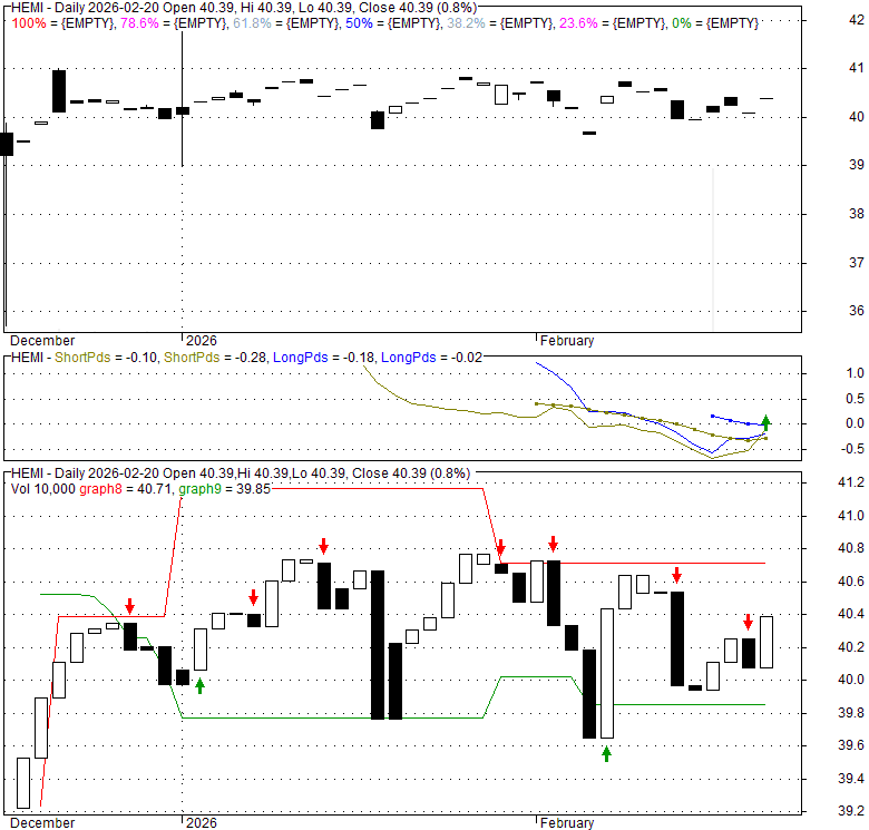 Price has closed above its short-term moving average. Short-term moving average is currently below mid-term; and below long-term moving average. From the relationship between price and moving averages: This stock is NEUTRAL in short-term; and NEUTRAL in mid-long term.[ HEMI ] has closed below upper band by 40.6%. Bollinger Bands are 0% narrower than normal.