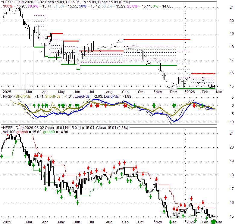 Price has closed above its short-term moving average. Short-term moving average is currently below mid-term; and below long-term moving average. From the relationship between price and moving averages: This stock is NEUTRAL in short-term; and BEARISH in mid-long term.[ HFSP ] has closed above bottom band by 39.9%. Bollinger Bands are 45.2% narrower than normal. The narrow width of the bands suggests low volatility as compared to its normal range. The bands have been in this narrow range for 0 bars. This is a sign that the market may be about to initiate a new trend.