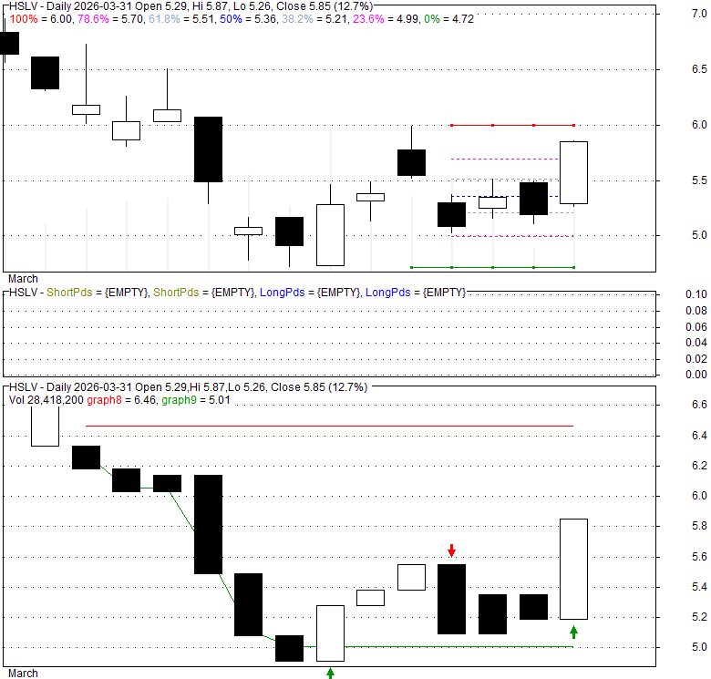 Price has closed above its short-term moving average. Short-term moving average is currently below mid-term; and below long-term moving average. From the relationship between price and moving averages: This stock is NEUTRAL in short-term; and NEUTRAL in mid-long term.[ HSLV ] has closed Bollinger Bands are 0% narrower than normal.