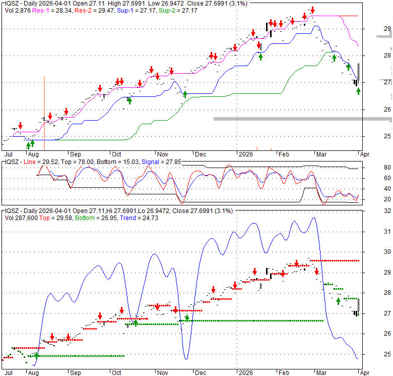 Price has closed above its short-term moving average. Short-term moving average is currently below mid-term; and below long-term moving average. From the relationship between price and moving averages: This stock is NEUTRAL in short-term; and NEUTRAL in mid-long term.[ IQSZ ] has closed below upper band by 46.8%. Bollinger Bands are 37.3% wider than normal. The current width of the bands does not suggest anything about the future direction or movement of prices.