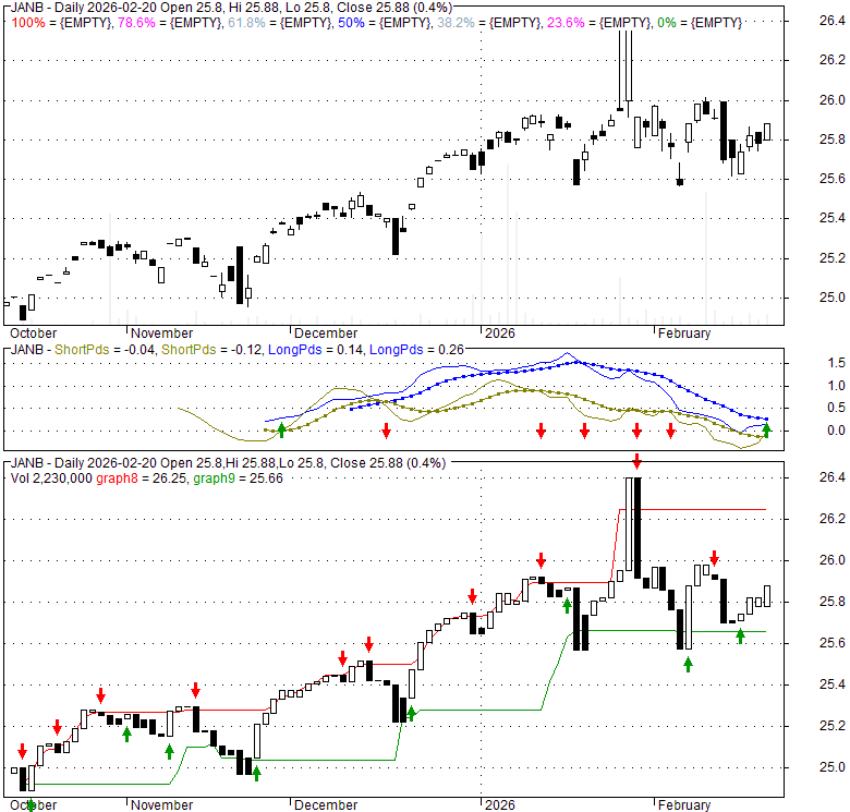 Price has closed above its short-term moving average. Short-term moving average is currently above mid-term; and below long-term moving average. From the relationship between price and moving averages: This stock is BULLISH in short-term; and NEUTRAL in mid-long term.[ JANB ] has closed below upper band by 37.2%. Bollinger Bands are 0% narrower than normal.