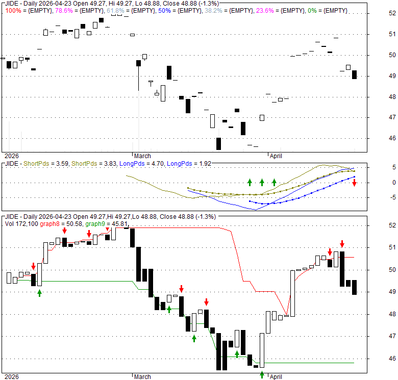 Price has closed below its short-term moving average. Short-term moving average is currently above mid-term; and below long-term moving average. From the relationship between price and moving averages: This stock is NEUTRAL in short-term; and NEUTRAL in mid-long term.[ JIDE ] has closed above bottom band by 35.5%. Bollinger Bands are 0% narrower than normal.