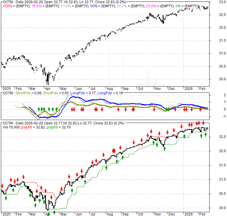 Price has closed above its short-term moving average. Short-term moving average is currently above mid-term; and above long-term moving average. From the relationship between price and moving averages: This stock is BULLISH in short-term; and BULLISH in mid-long term.[ OCTM ] has closed below upper band by 25.5%. Bollinger Bands are 21% narrower than normal. The current width of the bands does not suggest anything about the future direction or movement of prices.